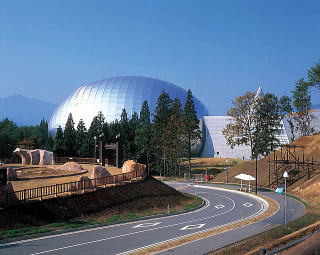 4時間近いドライブを経て、ようやく勝山に到着。ICを降りれば、道中に恐竜の看板や足跡のペイント、さらに目指す目的地は大きなタマゴの形をしています!