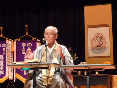 久しぶりにお会いする先生の姿。古くからご詠歌をされている講員さんは、とても懐かしかったことでしょう。大会の最後にご指導を頂くと、皆さん先生のお唱えに聞き入っておられました。