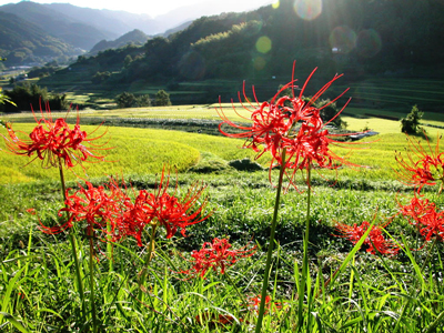 そういえば彼岸花が咲いているところは、田んぼの畔や、川の土手、お墓など、人間の暮らしにとってどこも大切な場所ばかり…。彼岸花は、花の咲いていない時も、害虫や野獣から私たちの暮らしを守ってくれていたのですね。