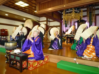 いやー、さすがに愛知は人材が豊富です。太鼓が10台以上に、シンセサイザー有り、バイオリン有り。ご詠歌や声明の先生方もおられて、充実の内容! 太鼓もよほど練習したのでしょう、よく纏まっていたし、新曲の披露も含めて見事な演奏でした。