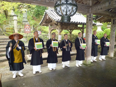 最初に、三重仏教青年会(仏青)の総会で提案して、同じ若手僧侶たちの賛同を得ました。急ぎ、宗派に托鉢許可証の申請をする。また有難いことに総本山長谷寺さまのご理解を得て、牡丹の花咲く頃、大勢の参詣者がお越しになる中で托鉢する許可を頂きました。