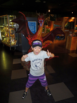 並びにあった海洋堂フィギュアミュージアムでは、息子のテンションが上がる上がる!! ようやく、子供が楽しめる場所に来たものですから。私も童心に返って、二人で隅々まで満喫していました。