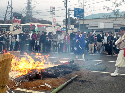 火渡りの準備。修行を積んだ山伏は、こんな炎の中も平気で歩むのです。