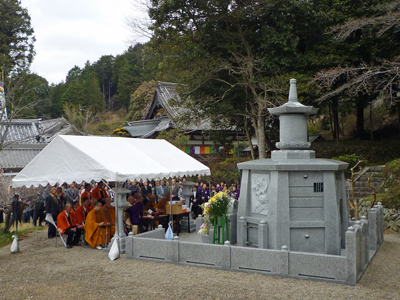 3日、常福寺の会式(本尊御開帳日)に、境内に建てた永代供養塔「久遠宝塔」の竣工式を執り行いました。