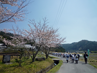 天候にも恵まれ、咲き始めた桜花を愛でつつの巡拝。ちなみに今回は、伊賀四国霊場会会長を勤めるうちの住職(第29番 常福寺住職 織田杲深)もお遍路さんに交じって一緒にお参りしています。