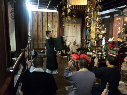 歴史ある諸堂・仏像の説明を受けてから、本堂(潅頂堂)では、「楊柳」のお唱えに合わせて高知の島田希保 詠秀が本尊さまに舞踊を奉納。