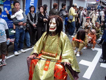 上野天神祭とは、だんじり(楼車)と、異相の鬼たちが列をなして行進する秋祭り。