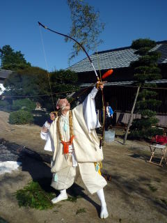 実は彼は、弓道二段の腕前なのだそう! 確かに、弓を構えているその所作がすでに只者ではありません。放たれた矢も、まさに舞い昇る龍のように、美しい音色を響かせて飛んでいきました。