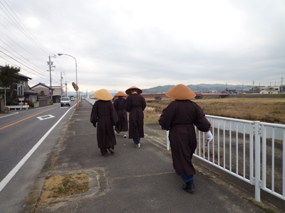 依那古仏教団の活動の一つに、年始に行う寒行があります。どういうことをするの?と妻にも聞かれたのですが、初参加の私にも当初はピンとこず「うーん、傘地蔵のようなことをお坊さんがするのかな?」と憶測でものを言っていました。